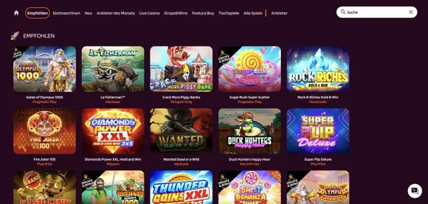 Spielautomaten sind die größte Kategorie, mit Tausenden Optionen über unterschiedliche Mechaniken und Volatilitätsstile hinweg. Sie finden Cluster-Pay-Spiele, Bonus-Buy-Titel (wo erlaubt) und moderne Multiplikator-Systeme, plus klassische Formate für ein einfacheres Spiel. Die RTP variiert je nach Spiel, und wir machen RTP-Details in den Beschreibungen sichtbar, damit Sie Titel vergleichen können, bevor Sie drehen. Wenn Sie nach HappySpins Spielautomaten suchen, werden Sie feststellen, dass wir Spiele auch nach Features wie Freispiele, expandierende Symbole und Jackpot-Tags gruppieren. Viele Spieler, die nach Casino HappySpins Spielautomaten suchen, starten mit High-RTP-Filtern und wählen danach nach Thema und Volatilität.